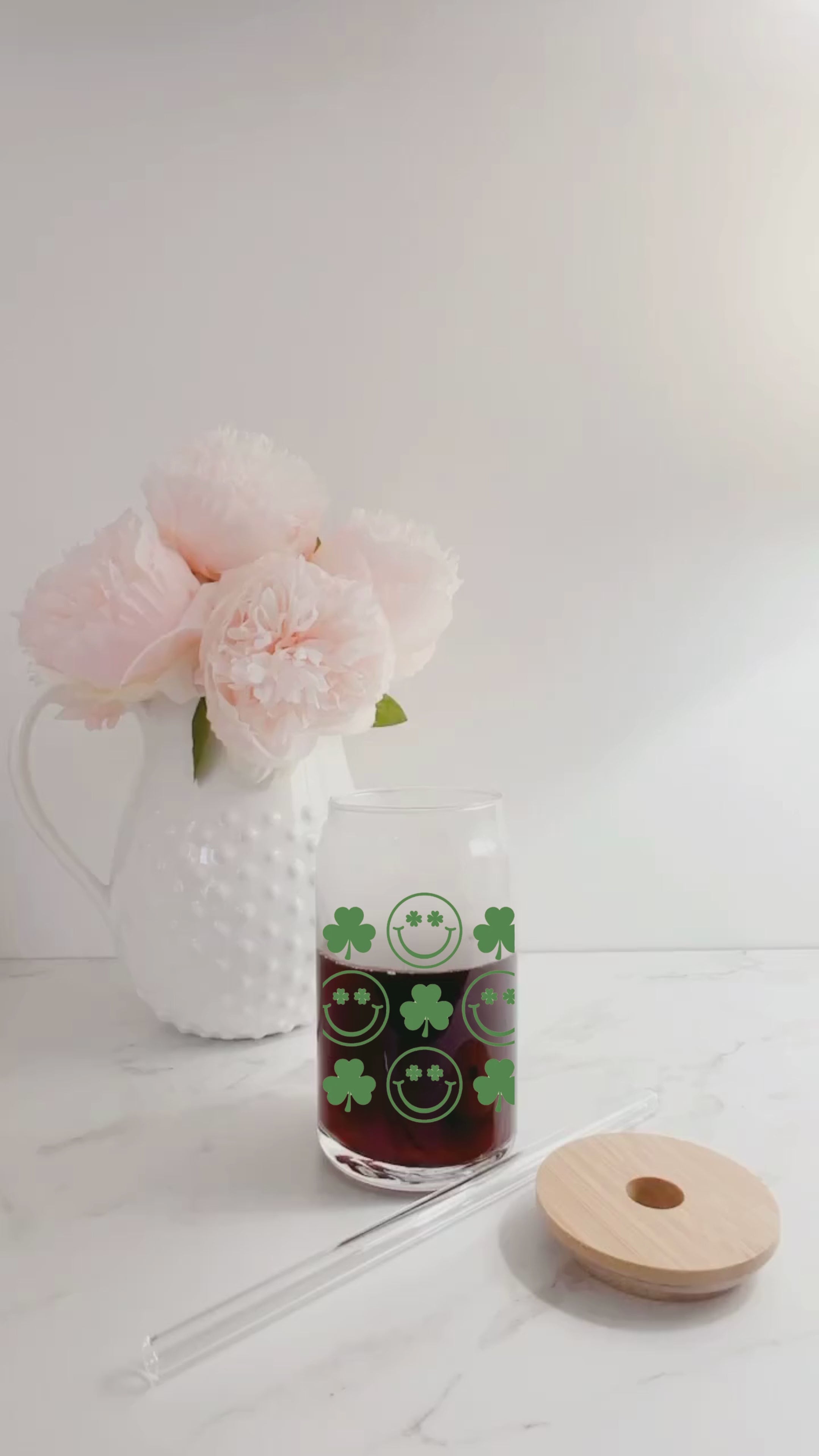 Saint Patricks Day Cup With Bamboo Lid & Glass Straw